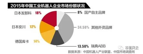 数据显示,国内工业机器人行业受零部件供应、相关技术和加工工艺等因素影响,基本被以ABB、库卡、发那科和安川四大巨头为主的国外机器人品牌占据,国产机器人品牌仅占约8%的市场份额,九成以上企业规模在1亿元以下,生存环境真的好艰辛!