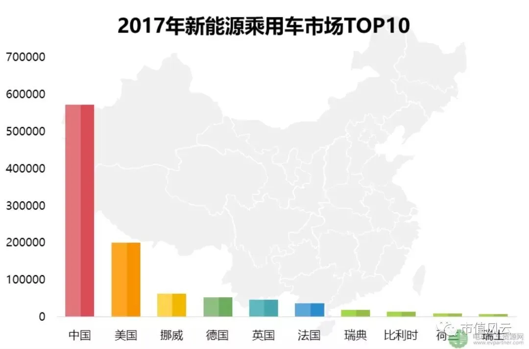 多重政策关怀下,效果也逐步显现出来。据ev-sales数据,2017年全球新能源乘用车(不包括客车、专用车)累计销量突破122万台,同比增长58%。当中中国的销量达到近60万台,与美国以及挪德法英等8个欧洲国家的总和持平。