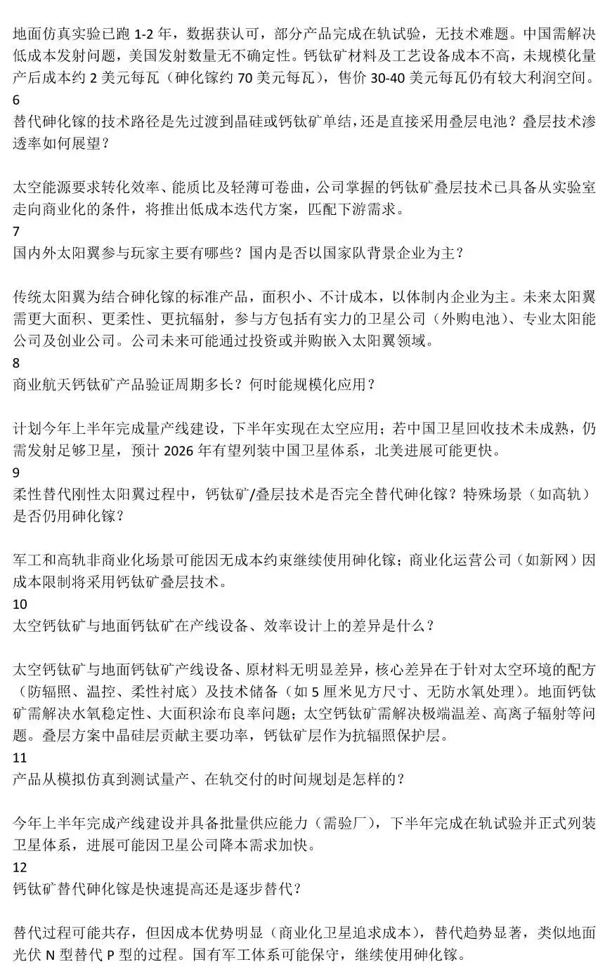 1、2026年,钧达&尚翼将主要完成美国和国内钙钛矿叠层试验线的建设、送样以及在轨验证。尚翼是目前全球唯一一家连续谱测试机构,得益于国家级太空仿真实验室的实验数据,公司产品整体推广速度有望较快。此外,尚翼团队的美国留学工作背景、联合创始人的美国资源以及钧达的全球化产能及渠道优势,亦进一步加速产品在北美的拓展,目前公司已经开始在美国做销售以及产能建设的准备工作。