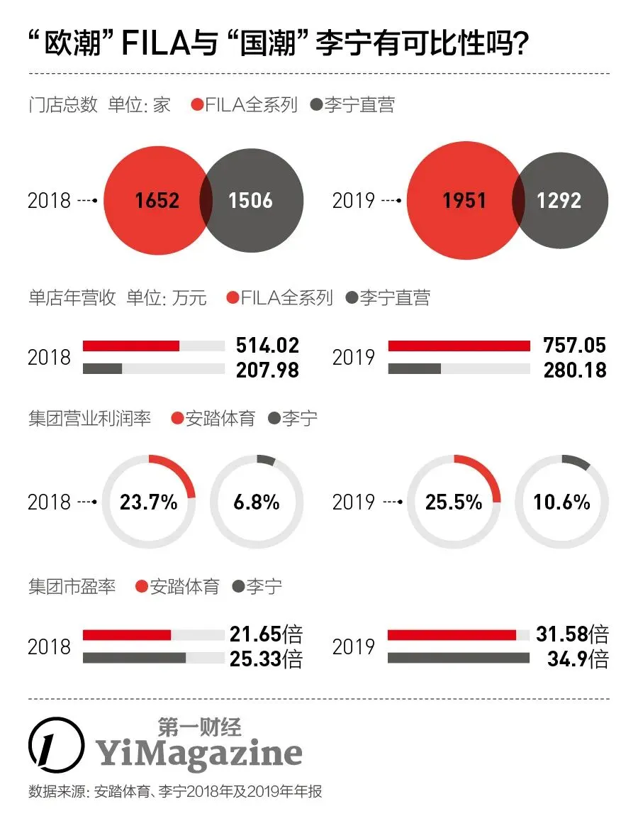 更重要的是,消费者对于“李宁”这个品牌的认知没有变得割裂,反而得以强化,这与FILA在安踏公司内部品牌独立性过强、主品牌从FILA借力相当有限的情况完全不同。