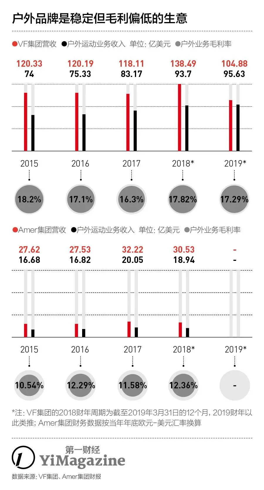 同理,安踏联手腾讯等企业在2018年组建财团以46亿欧元收购Amer集团时,对这家公司的价值判断,也是它在全球市场细分领域拥有很多做得很好的品牌,比如户外品牌Arc'teryx、Salomon及运动器具品牌Wilson,但同时这些品牌在中国市场则属于刚刚起步的阶段,“发展潜力没有激发”,而这正是安踏可以再次发挥自己价值的地方,就像它对FILA和Descente所做的那样。