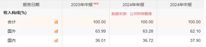 但是我们发现,福瑞医科的营收中,近些年超60%来自海外,2025年上半年海外营收占比高达64%,国内只有36%,形成了明显的分化和反差。