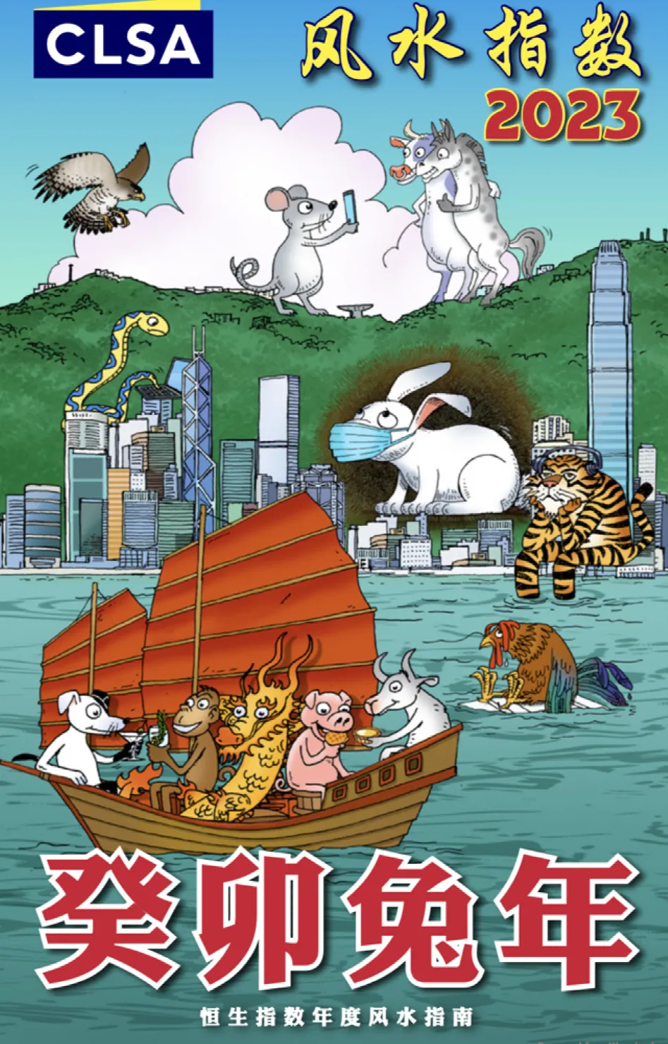 中信里昂发布2023年风水指数报告,预测黑兔在年初将东走西顾、试探一番,夏末蹉跎下行,之后在年底反弹,整个冬季持续活跃,以小涨之势收尾。