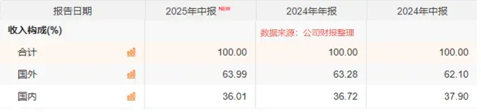 但是我们发现,福瑞医科的营收中,近些年超60%来自海外,2025年上半年海外营收占比高达64%,国内只有36%,形成了明显的分化和反差。