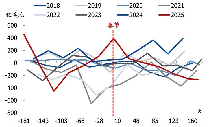 外汇积累:过去两年中国出口表现良好,但受中美关税升级预期、中美利差、避险因素等影响,贸易商积累了大量外汇,出现 “顺差不顺收” 现象。 结汇逻辑:2025 年 4 月后中美关税缓和,叠加部分领域中国企业竞争力提升,外资逐步回流,银行代客结售汇改善;年底是传统结汇窗口,叠加人民币升值预期,企业加速结汇,与汇率升值形成正向循环,进一步推升人民币。