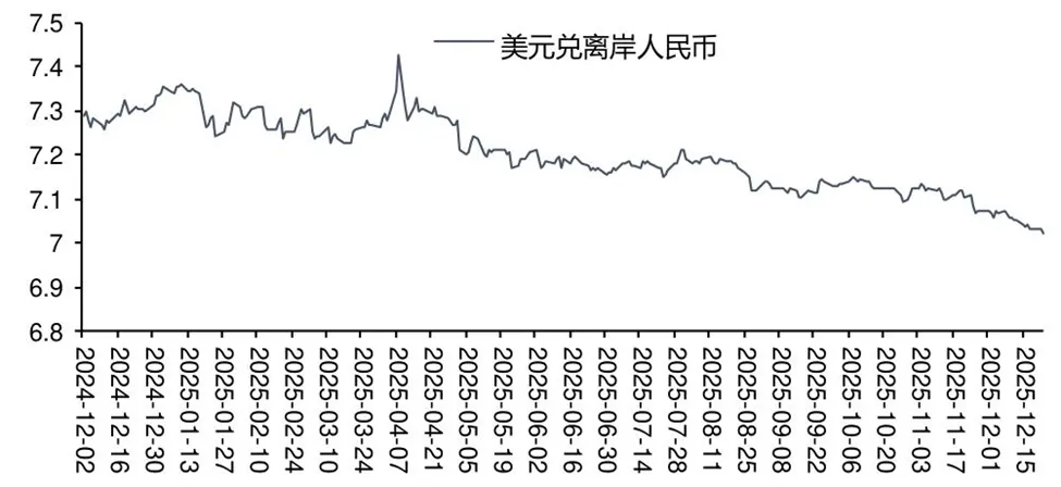 2025  4 月美国发起关税战的冲击过后,人民币并未走弱,反而进入持续升值通道,并非短期偶然波动。
