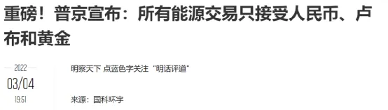 在俄乌冲突发生后,以欧美为主体的国际金融体系对俄罗斯执行了多轮制裁,包括金融的,实体的。俄罗斯迅速应对宣布,可以用黄金购买原油、天然气等资源品种,并得到了其他部分国家的响应。