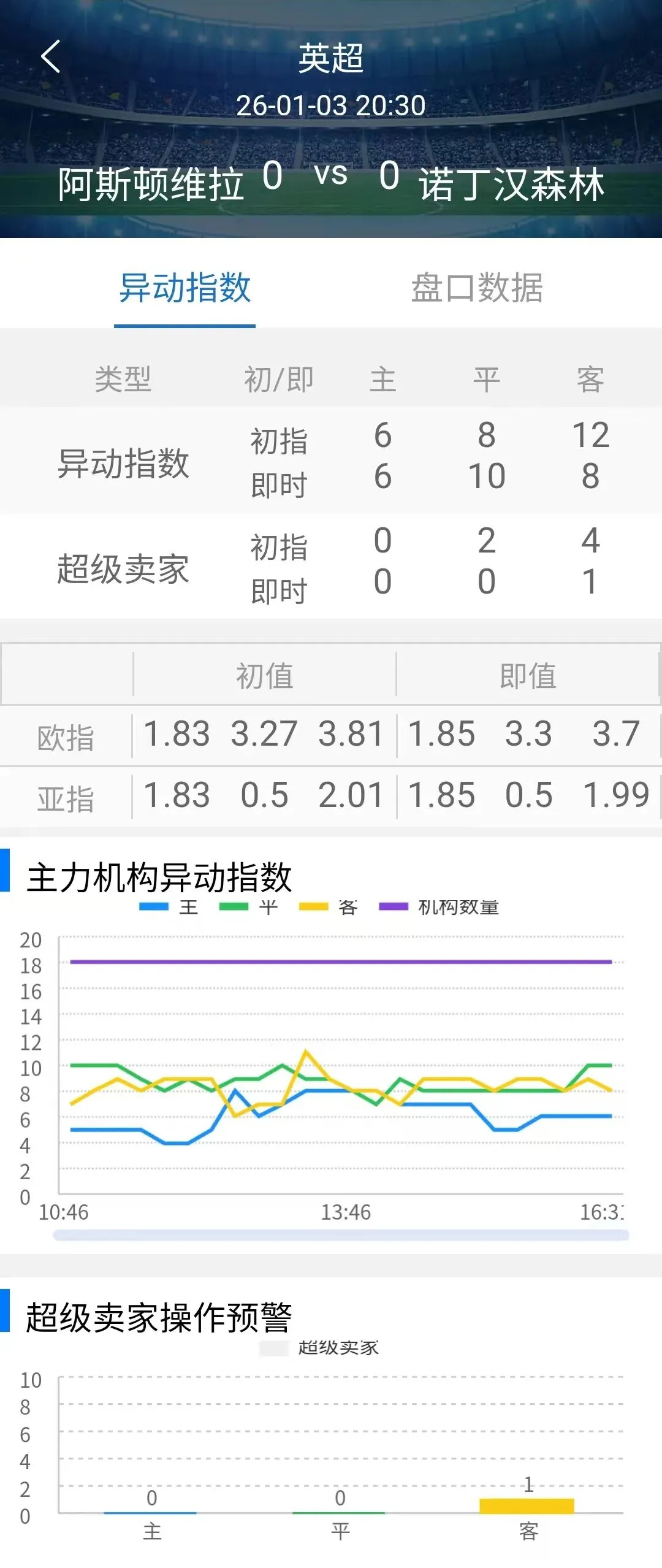超卖指数初指:0-2-4,发生平客双超卖,临场:0-0-1,平超卖消失,客超卖始终维持,诺丁汉取胜概率不大。