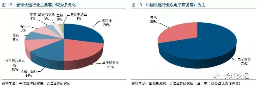 反观全球快递行业,其客户结构多元化,以高科技、金融、银行、交运设备行业客户为主。单一的客户结构,使得中国快递陷入同质化竞争的困境。
