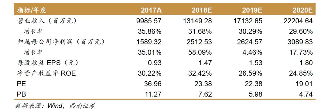 基于以上假设,我们预测公司2018-2020年分业务收入成本如下表: