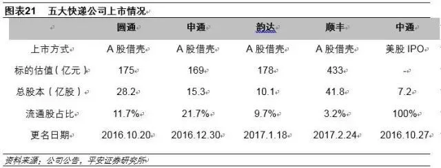 1.韵达、中通全网把控能力更强