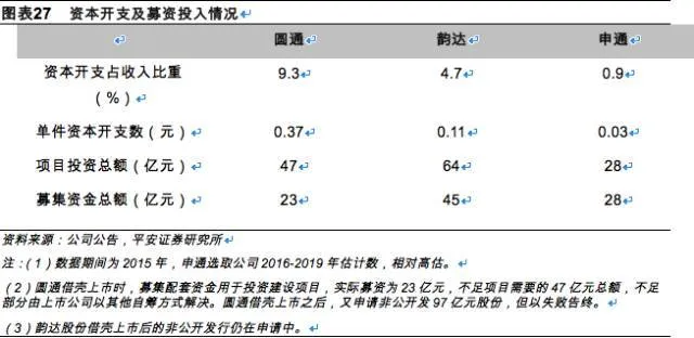 2.圆通、韵达资产设备建设力度前列