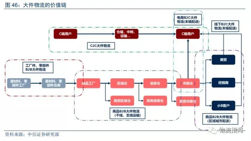 与快递几乎只服务C端客户不同,大件物流兼具2B和2C业务。