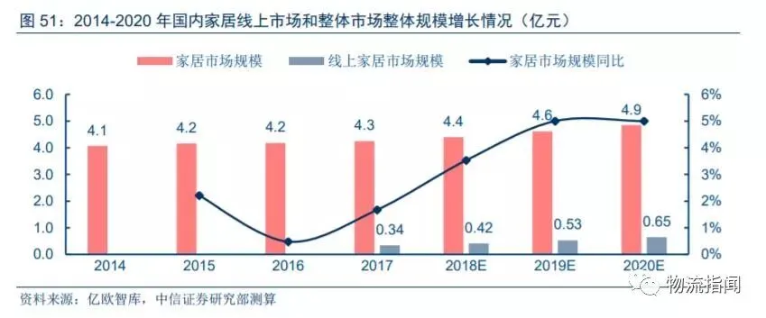 相比家电市场,家居市场呈现出市场规模大(家居市场规模为4.25亿元,明显大于家电的1.26万亿元),电商渗透率低(据统计家居线上渗透率不到5%,低于家电的27%)的特点,其发展潜力是非常大的。