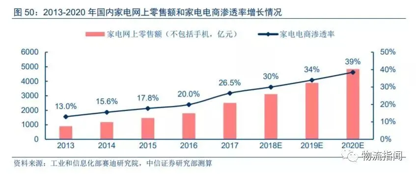 目前75%的家电交易发生在线下,如果按照8%的物流费用率计算,线下家电物流市场规模将高达约800亿元。