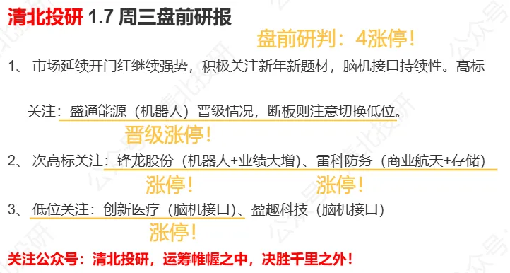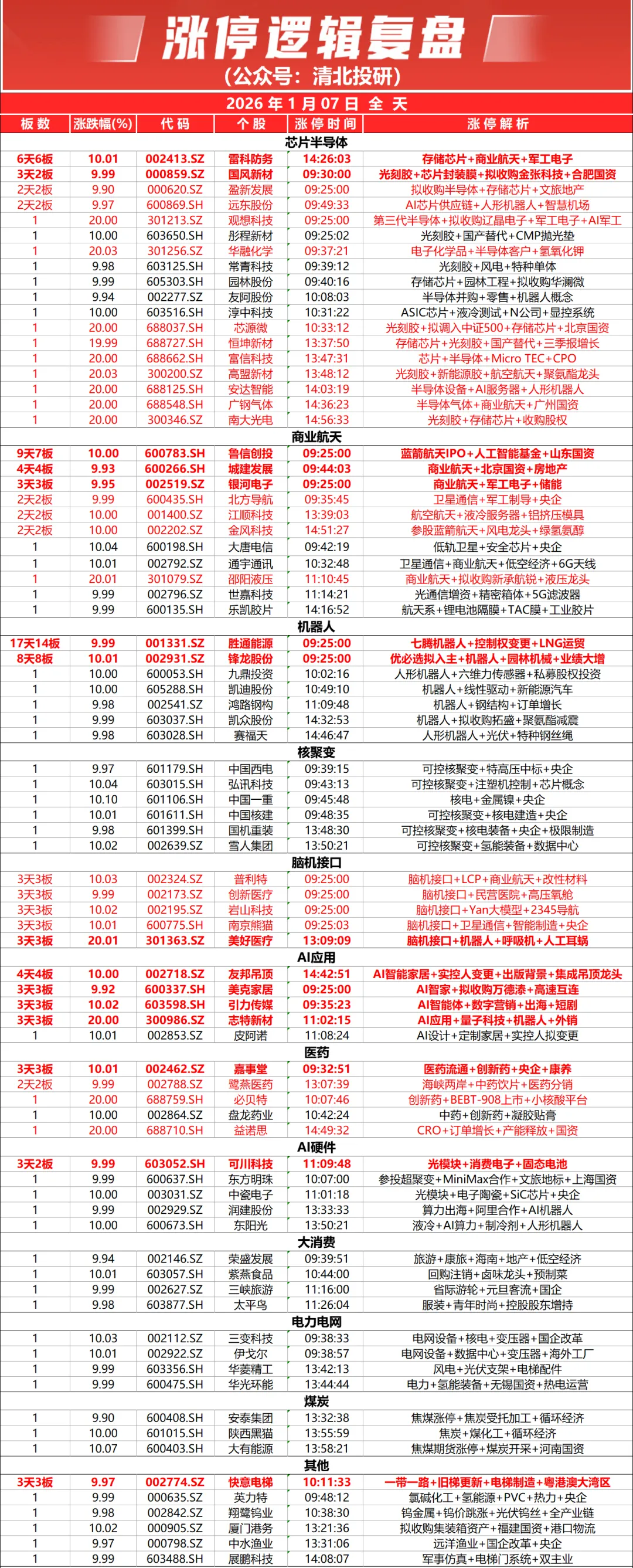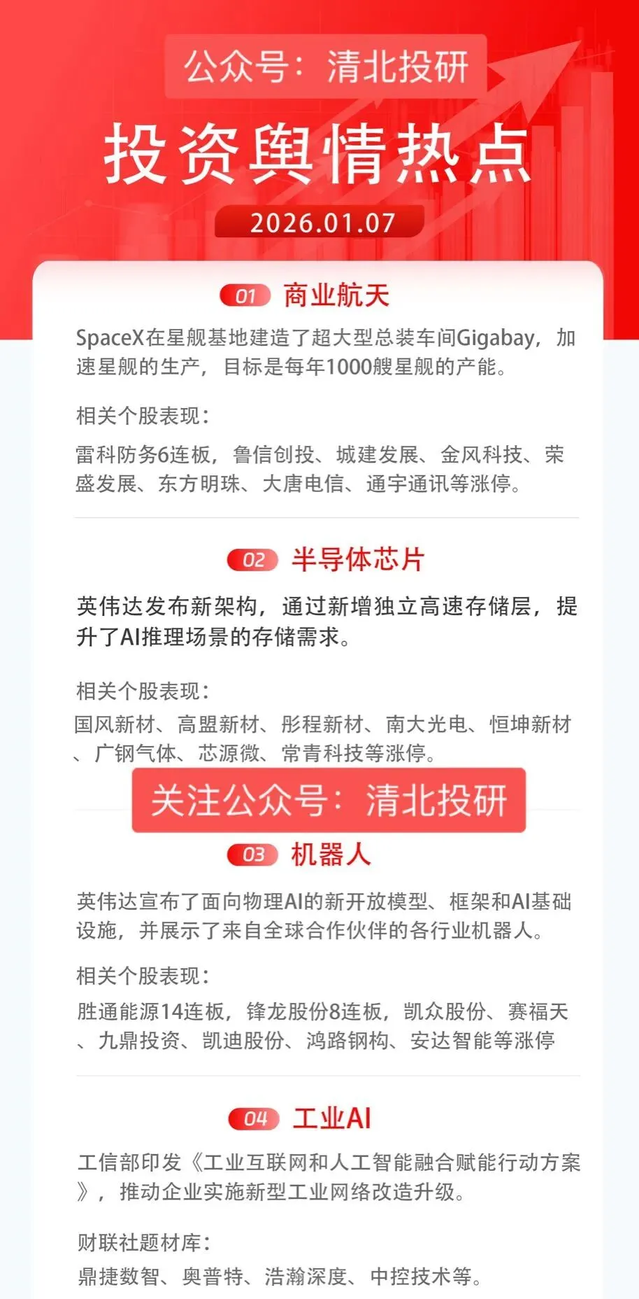 (案例点评仅为操作教学,不构成投资建议,BS点均为学员投稿用户编码:20087282)竞价绝杀:观想科技、美好医疗20CM涨停,胜通能源10CM涨停!1、嘉事堂:脑机接口概念,题材主流,昨天竞价绝杀和开盘定龙换手关注位置。今天T板晋级3板。2、王子新材:商业航天+可控核聚变+军工+业绩增长,题材主流,昨天做T,今天涨停开板取关。3、盈趣科技:昨天竞价绝杀标的,脑机接口概念,题材主流,竞价绝杀和开盘定龙换手关注位置。今天断板取关。4、上海九百:零售+参股券商,换手关注位置,尾盘开板开板回踩,有反包预期。1、商业航天:SpaceX在星舰基地建造了超大型总装车间Gigabay,加速星舰的生产,目标是每年1000艘星舰的产能。2、半导体芯片:英伟达发布新架构,通过新增独立高速存储层,提升了AI推理场景的存储需求。3、机器人:英伟达宣布了面向物理AI的新开放模型、框架和AI基础设施,并展示了来自全球合作伙伴的各行业机器人。4、工业AI:工信部印发《工业互联网和人工智能融合赋能行动方案》,推动企业实施新型工业网络改造升级。文章右下角点赞小红心,即可参与“抢钱”互动,获得明日盘前研报!