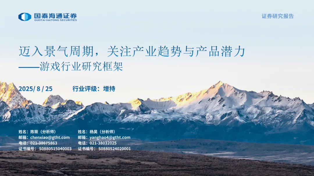 关注我们,后台回复“202601082”就可以获取《国泰海通:2025游戏行业研究框架》(完整版) 的全文下载链接。