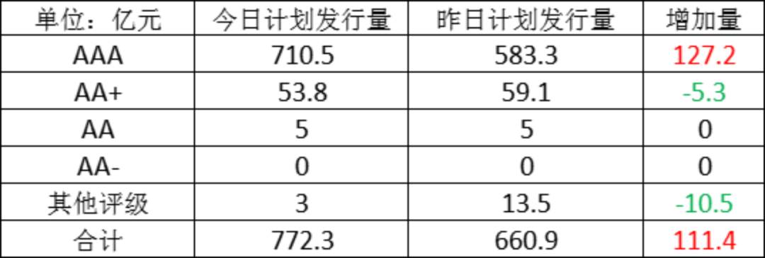 今日存单计划发行量规模772.3亿元,较上一工作日计划发行量有所增加,增加了111.4亿元。