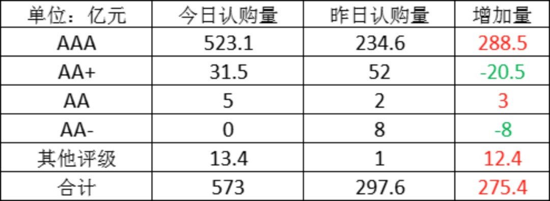 今日存单认购量规模573亿元,较上一工作日认购量有所增加,增加了275.4亿元。