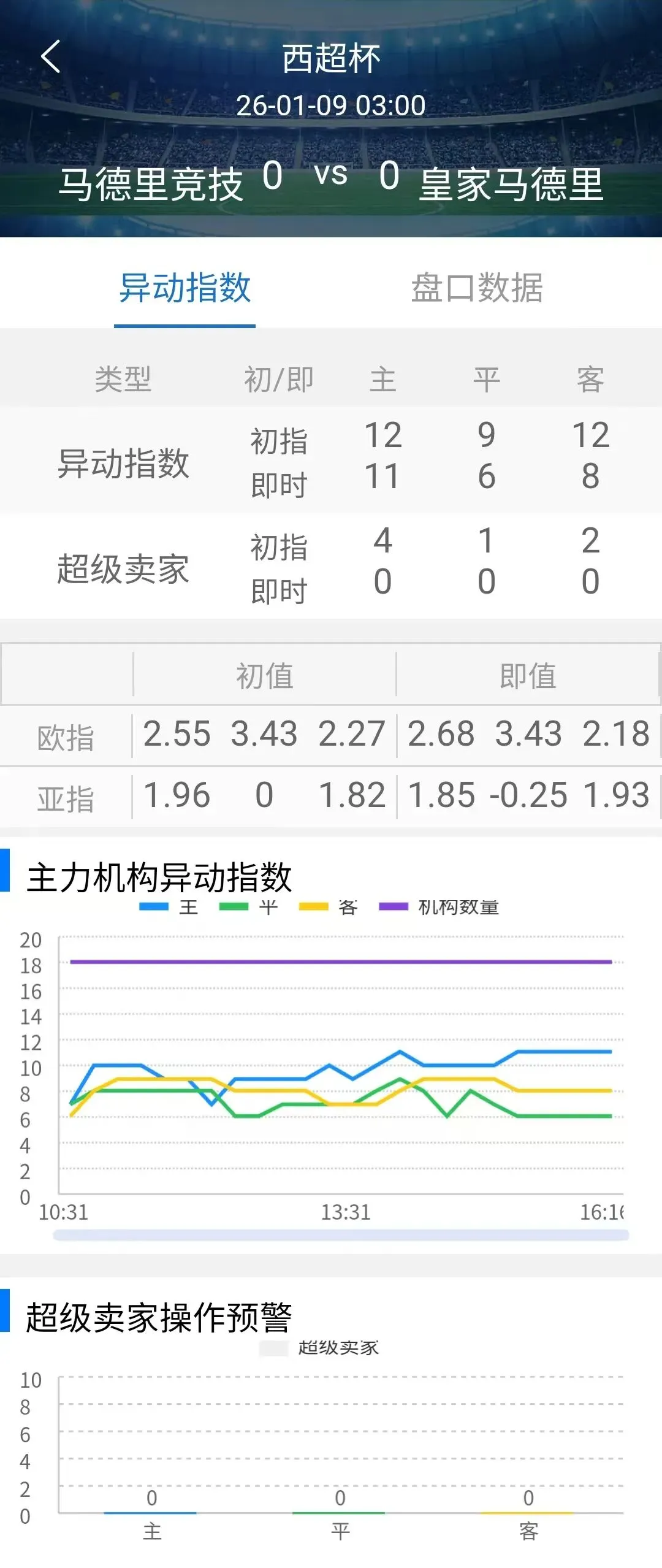 超卖指数初指:4-1-2,发生三线超卖,临场:0-0-0,超卖全部消失,双方回归实力对话。