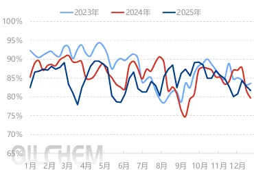 本期纯碱综合产能利用率81.65%,上周82.74%,环比下降1.09%。其中氨碱产能利用率83.32%,环比下降5.90%;联产产能利用率73.85%,环比增加0.79%。15家年产能百万吨及以上规模企业整体产能利用率85.80%,环比下降1.68%。