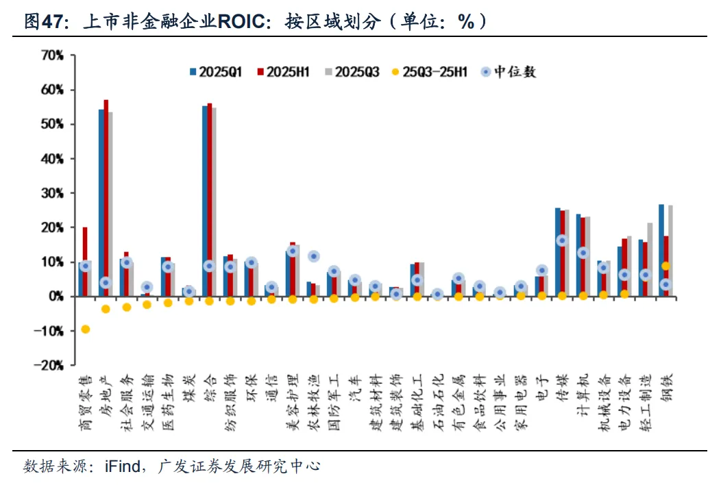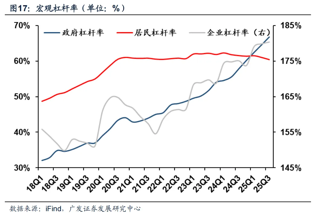 宏观杠杆率能说明问题。以“非金融机构负债/名义GDP”衡量宏观杠杆率,本质是宏观杠杆对于GDP的拉动作用。市场期待进一步降准降息或财政发力来提振经济,但高杠杆率不代表经济刺激成果有效,低杠杆率也不能说明宏观刺激力度弱。杠杆总量数据上,25Q3宏观杠杆率为307.5%,而2024年末为295.4%,2021年-2024年年均宏观杠杆率提升10%-13%,分类型看,居民杠杆率在2020年以来稳定在60%水平,政府与企业杠杆率提升;杠杆方向上,过去注重投资拉动导致资产回报率下降,而当下宏观政策更注重消费等市场化需求。