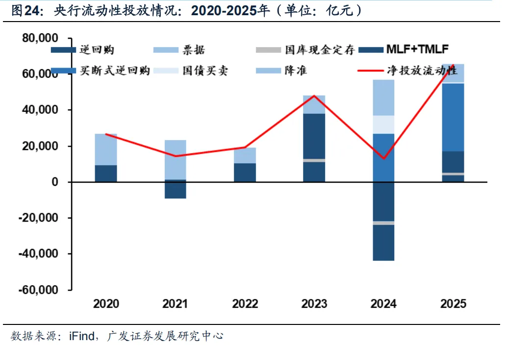 总基调上,2024年12月中央经济工作会议提出适度宽松的货币政策,该政策在2008-2010年期间也曾使用,根据国务院发展研究中心定义:适度宽松是根据形式变化及时适度调整货币政策,确保货币信贷稳定增长及金融体系流动性充裕,促进经济平稳较快发展、支持内需。其中重点提到三个点,即流动性充裕、支持内需、信贷稳定增长。