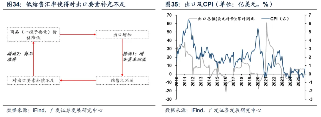 国内出口的走强背后是国内要素价格低于海外,而中美利差高位下(本质上政策利率差)结售汇率不足使得资金并未流向国内改善生产关系,对出口要素补充不足,进一步降低国内要素价格,如2015-2016年、2019-2021年出口增速与通胀反向。经济学上有一个专业名词为“荷兰病”,是描述一个国家或地区因为某种初级产品的出口增加而导致其他产业尤其是制造业衰落的现象,本质是出口带动经济繁荣、跨境资金回流使得通胀提升,但其他制造部门萧条。而当前中美利差收窄及人民币升值预期下,预计跨境资金回流带动国内生产关系改善,通胀提升,出口需求转向对内消费。