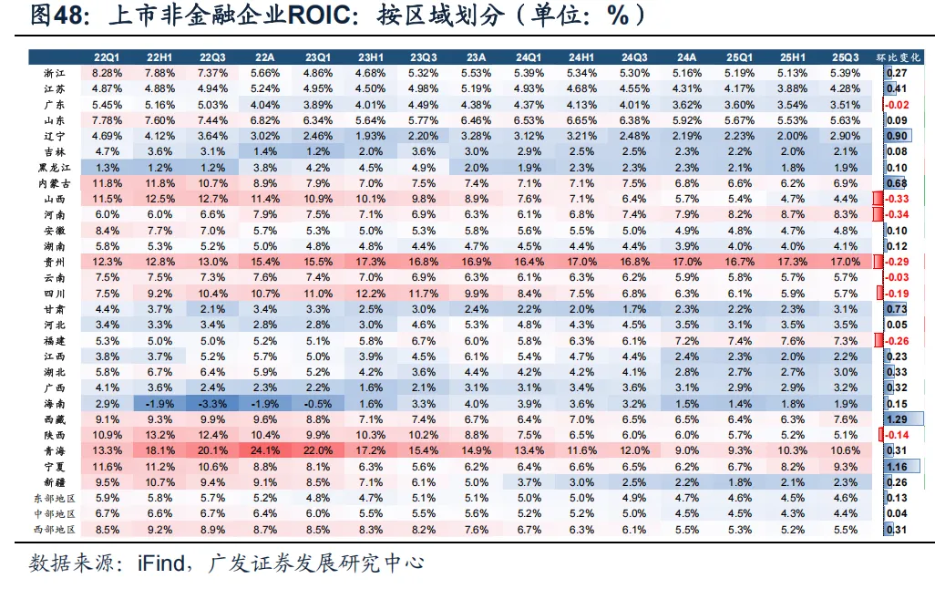 根据前文分析,当前宏观政策更注重消费等市场化需求,我们对上市非金融企业ROIC和隐含不良率进一步分析。分行业ROIC来看,钢铁、电子等制造业盈利能力修复,食品饮料、商贸零售等消费行业盈利能力下滑;分省份ROIC来看,福建、贵州、河南等省份ROIC下滑。