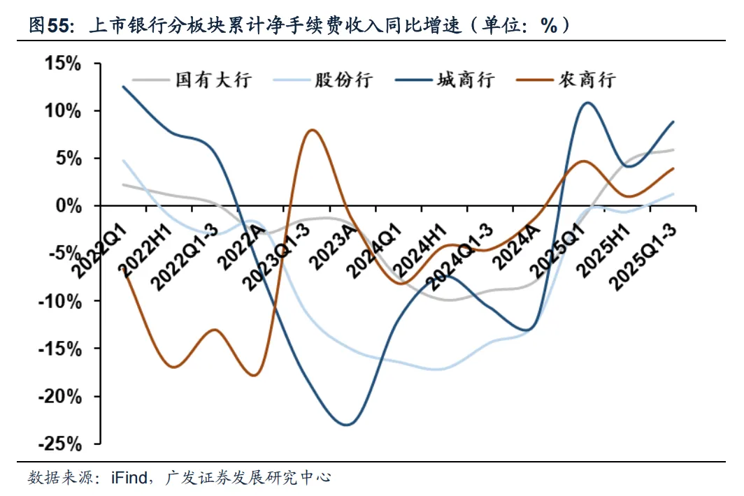 四是中收增速有望继续正增。2025年上市银行中收占营业收入的比例达14%,主要中收贡献为托管业务、理财业务和代理业务,展望2026年,预计随着资本市场活跃度提升、银行结汇交易量加大,26年净手续费增长有望回正,其中代理业务、支付结算业务见长的银行将更为受益。