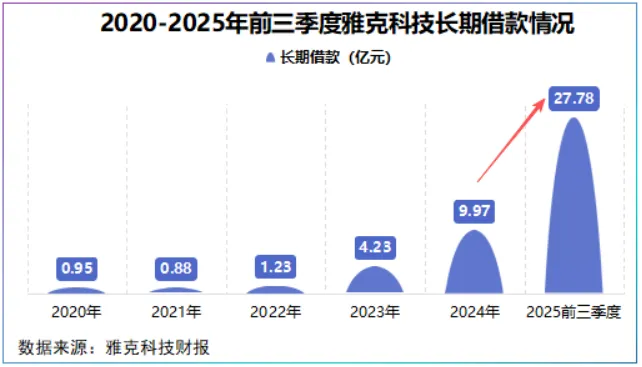 2025年前三季度,雅克科技长期借款同比猛增325.79%,跃升至27.7亿元,接近2024年全年的3倍!