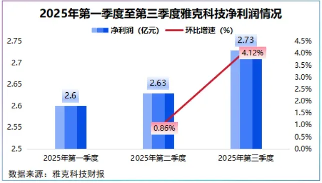 2025年上半年,雅克科技营收达到42.93亿元,同比增长31.28%,第三季度达到21.74亿元,同比增长24.75%,稳定在两位数增长。