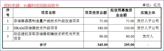 根据招股说明书,长鑫科技295亿元募资额主要流向存储器晶圆产线技改(75亿元)、DRAM存储器技术升级(130亿元)以及动态随机存取存储器开发(90亿元)。