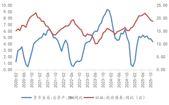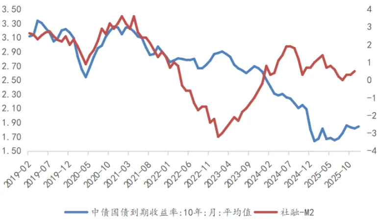 金融数据与物价水平的组合进一步印证了实体经济复苏的复杂性。11月社融数据虽在总量上略超预期,但结构上呈现明显的“政府主导、私人收缩”特征。新增社融主要由政府债券融资支撑,而广义财政净投放的下行暗示财政资金目前更多处于积聚状态,实物工作量的转化存在时滞。私人部门融资需求依然较弱,居民中长期贷款负增走阔验证了地产周期拐点未至;企业端融资虽有回暖,但主要流向短期贷款与债券发行,更多体现为流动性管理而非资本开支扩张。值得注意的是,虽然核心CPI维持高位,但PPI的持续负增使得实体经济面临较高的实际利率水平,这对投资回报率构成约束。展望后续,打破当前的负反馈循环,关键在于财政政策由“融资端”向“支出端”的高效转化,以及货币政策在降低实际融资成本上的进一步发力,以修复微观主体的预期与支出意愿。