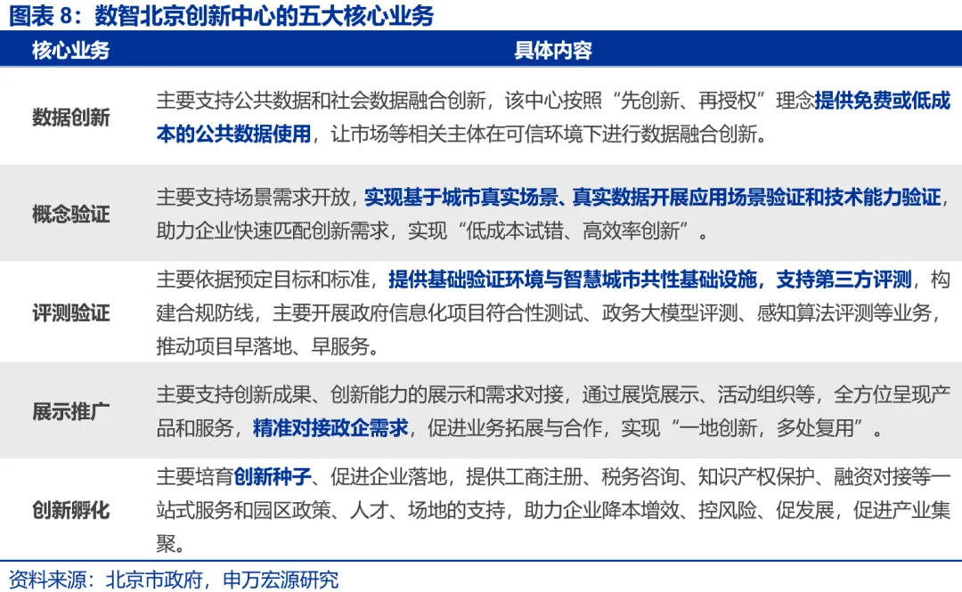 共性特征之三:创新基础设施尚处探索阶段,地方布局较少。仅北京、湖北、山西、广东、江西等少数地区明确提出布局创新基础设施,典型如北京“建设数智北京创新中心,促进数据、技术、场景联动创新”,该中心亦或是推动北京全域数字化转型、加快建设数字城市的重要创新平台。其余地区对创新基础设施的布局多隐含于“新基建”整体表述中,并未针对性布局,尚未成为普遍重点。