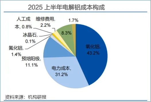 电解铝是典型的高耗能行业,电力成本占比高达31.2%。