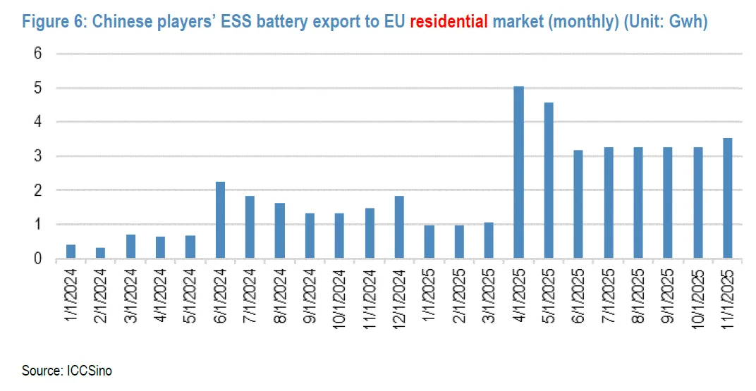 中国厂商在欧洲市场的表现同样亮眼,前11个月出货量达到92.8GWh,同比增长145%。欧洲市场呈现出明显的多元化特征,公用事业级储能是主流,但户用储能市场表现也非常不错,占据全球户用储能市场71%的份额。这与中国户用储能市场几乎为零形成鲜明对比,说明不同电价机制和政策环境对市场发展的深刻影响。