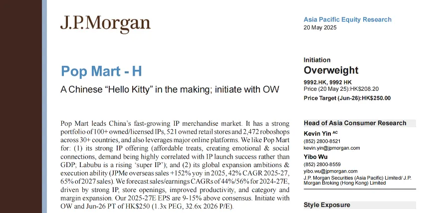 作为现如今最热门的IP,不仅是摩根大通在关注着Labubu,其实大摩、UBS、Jefferies等几乎所有的投行都在这两个月发布了泡泡玛特相关研报。
