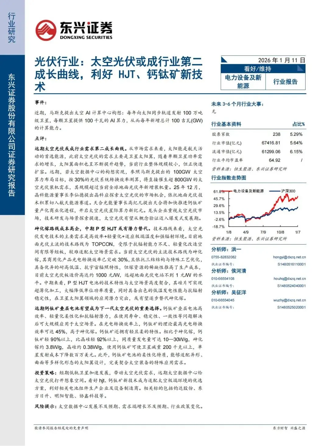 『研报』光伏行业:太空光伏或成行业第二成长曲线,利好HJT、钙钛矿新技术