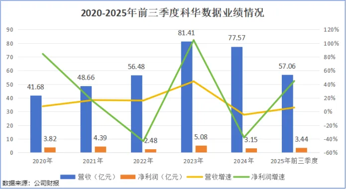 2025年前三季度,科华数据实现营收57.06亿元,同比增长5.8%;净利润3.44亿元,同比增长44.7%。