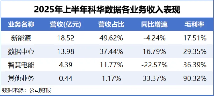 得益于下游需求的急剧增长,科华数据数据中心业务直接被推入高速发展的快车道,2025年上半年实现营收13.98亿元,同比增长16.79%,是三大业务中唯一实现增长的业务。