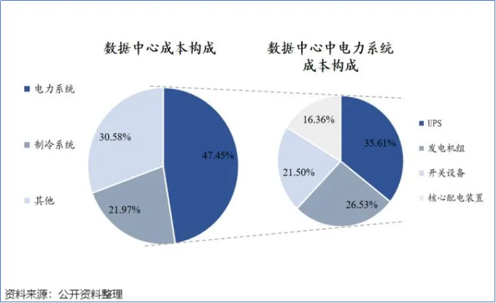 在电力系统中,UPS是成本占比最高的部分,高达35.61%。