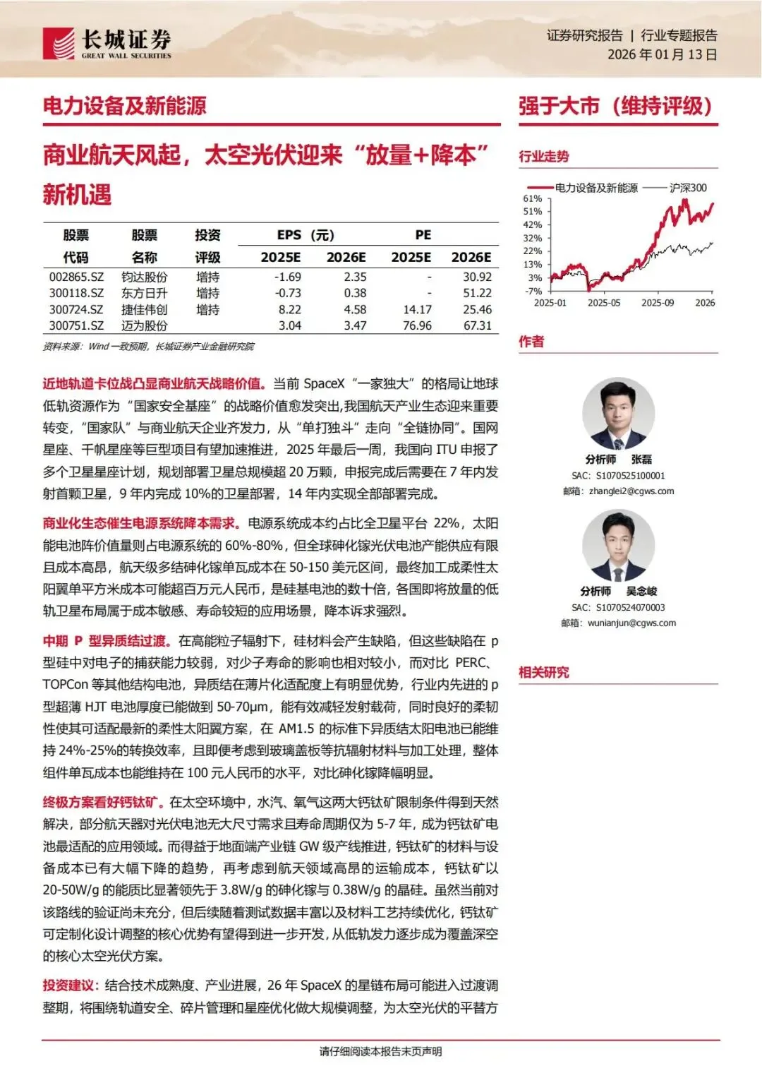 本期文章: 『调研』太空光伏:地外可靠能源,前景星辰大海-260111