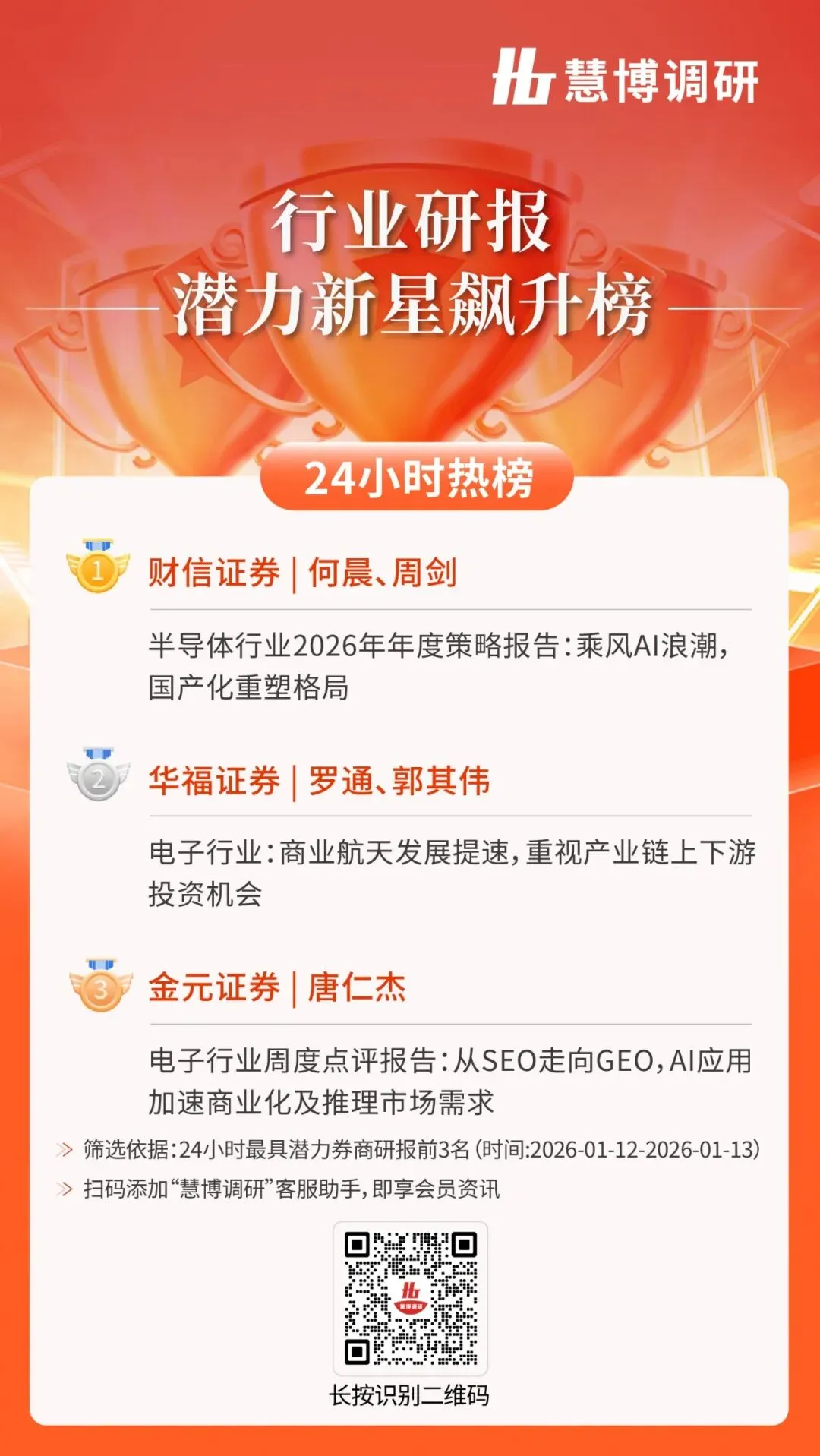 24小时热榜 | 1月13日行业研报新星飙升榜速递