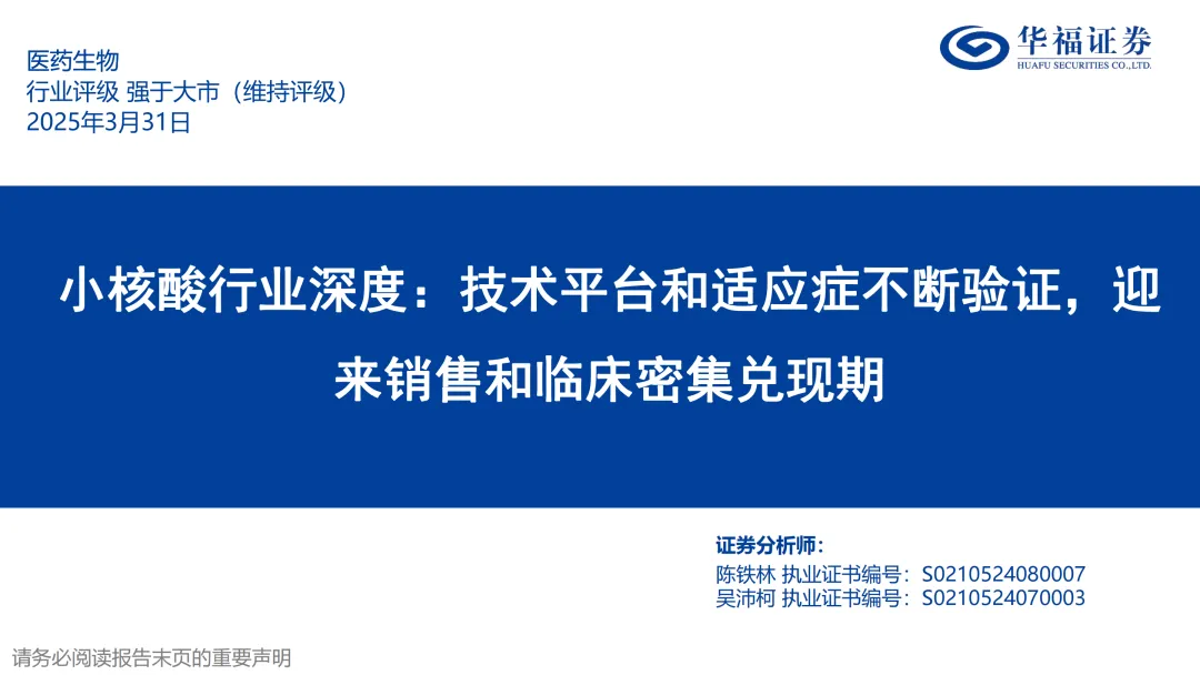 关注我们,后台回复“202601163”就可以获取《华福证券:2025小核酸行业深度报告》(完整版) 的全文下载链接。