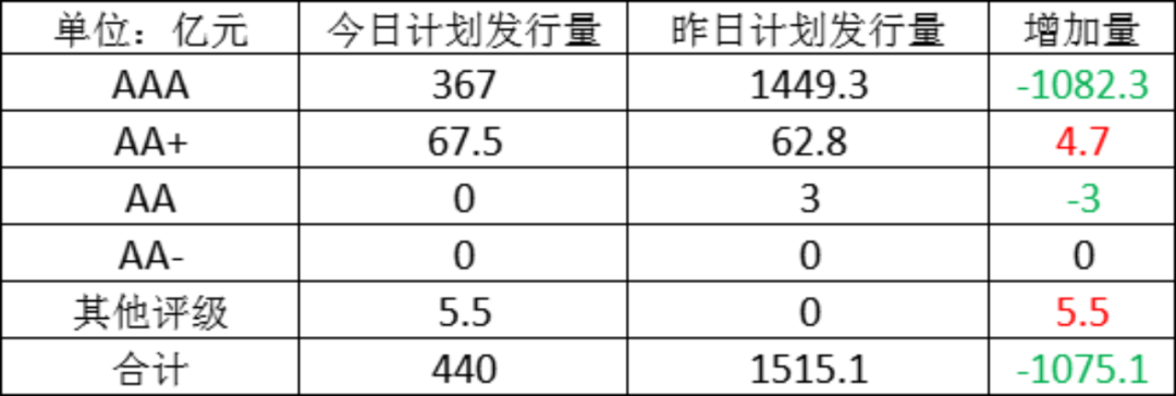 今日存单计划发行量规模440亿元,较上一工作日计划发行量大幅减少,减少了1075.1亿元。