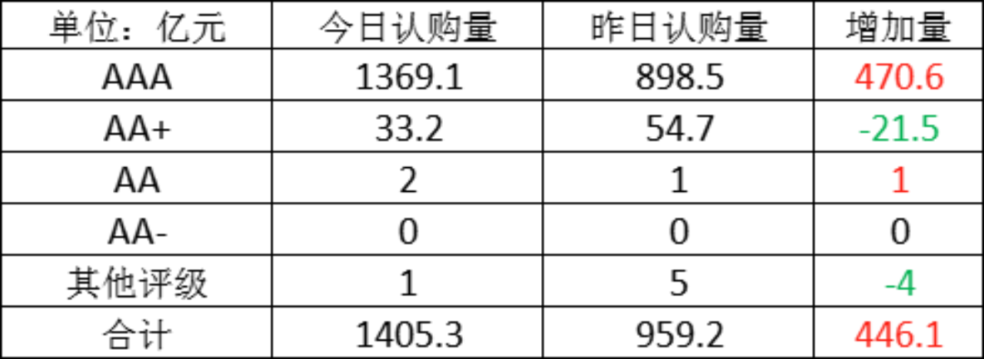 今日存单认购量规模1405.3亿元,较上一工作日认购量有所增加,增加了446.1亿元。
