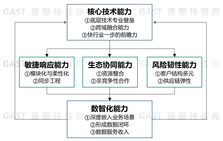 其次是具备动态协同能力,以强化生态适配韧性。重点提升三类能力:一是敏捷响应能力,通过模块化、柔性化、同步工程,适配整车快速迭代;二是生态协同能力,通过资源整合、非竞争性合作,强化与整车企业及伙伴的联动;三是风险韧性能力,通过客户结构多元、供应链弹性,分散依赖风险。