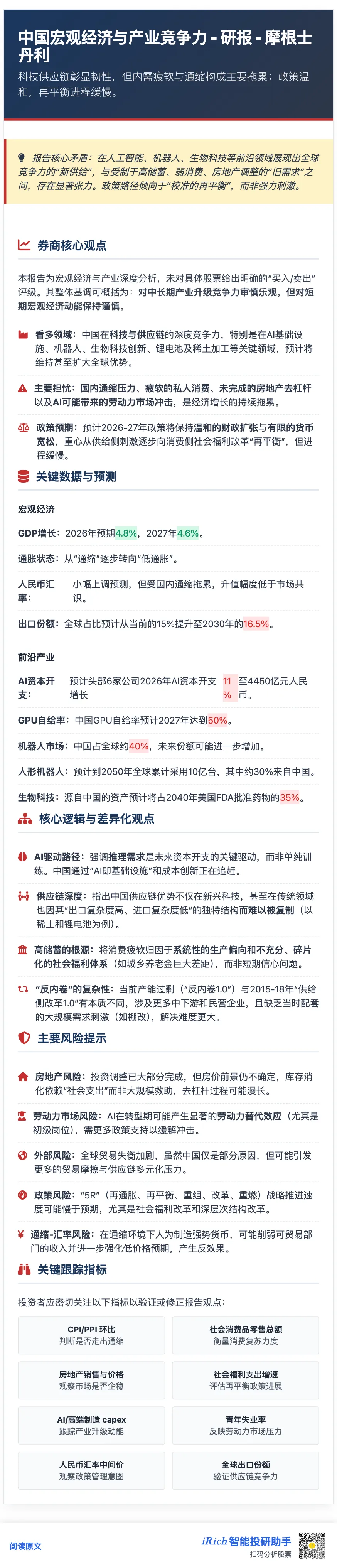 摩根士丹利这份报告不仅勾勒出中国科技与供应链竞争力的宏大地图,更指向了投资范式的转变——从短期政策博弈转向长期结构趋势。投资者应聚焦创新驱动的硬科技、自动化及生物科技赛道,同时密切关注社会福利改革与反内卷政策的实质进展。在不确定性中捕捉确定性,方能在新一轮产业浪潮中占据先机。
