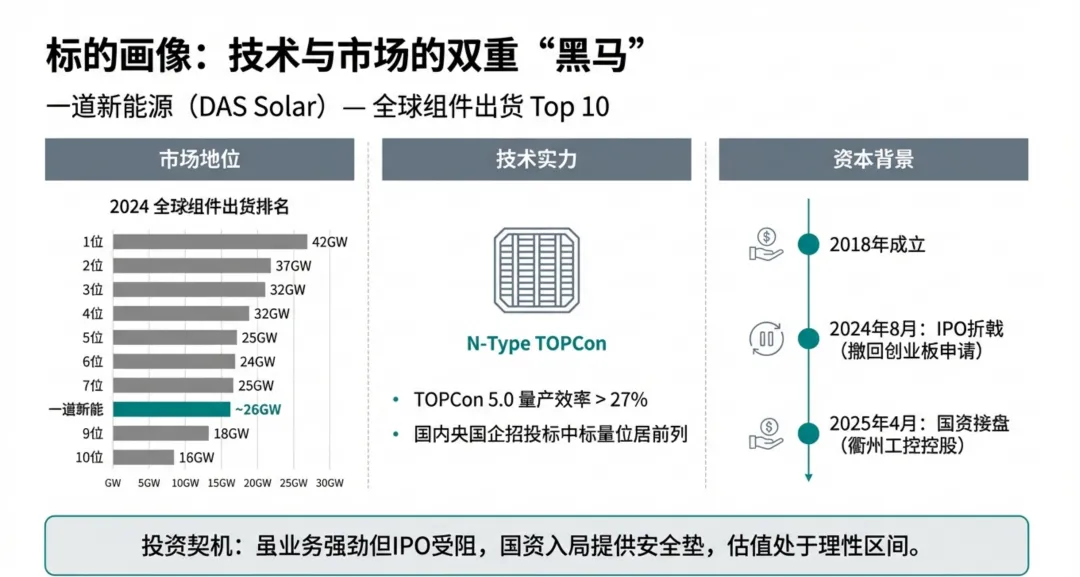 2026年1月16日,TCL中环发布重磅公告,宣布拟投资并控股一道新能源科技(衢州)有限公司(以下简称“一道新能源”或“Das Solar”)。